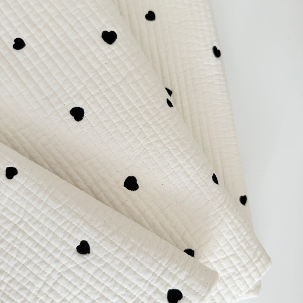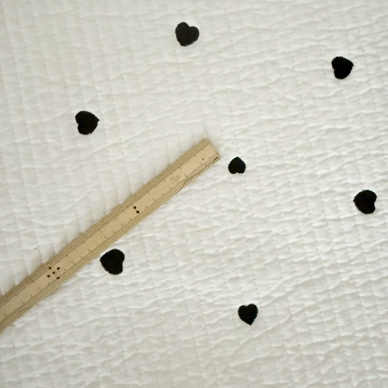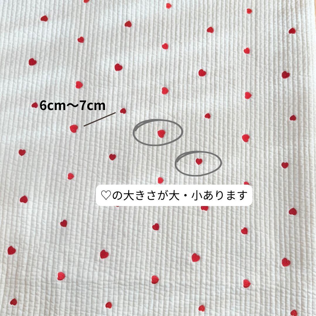ハートの大きさ: 大ハート約1.5cm 小ハート1cm 刺繍の幅:約6~7cm間隔