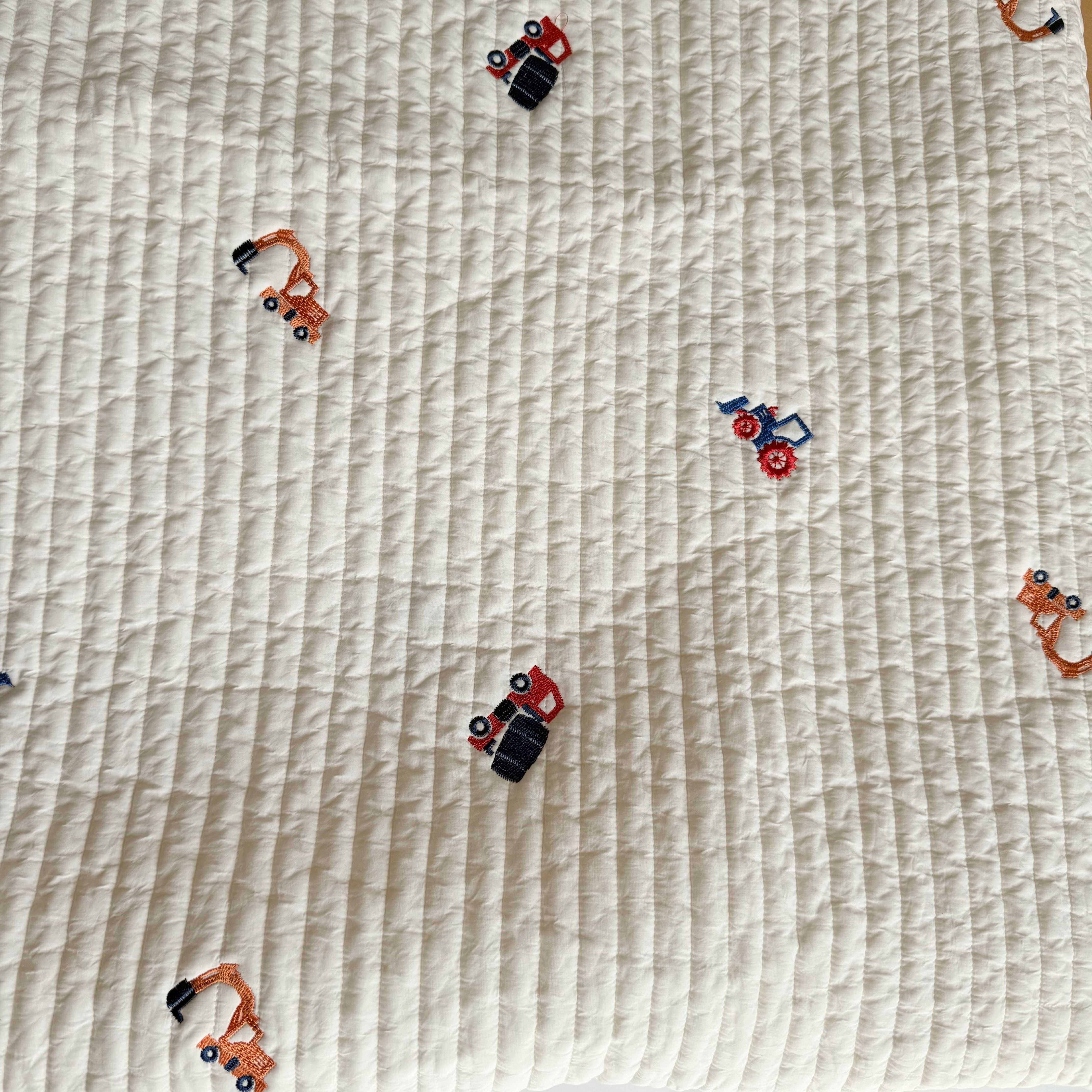 【予約】はたらくくるま刺繍 ヌビ生地|生成り|韓国ヌビ・キルティング