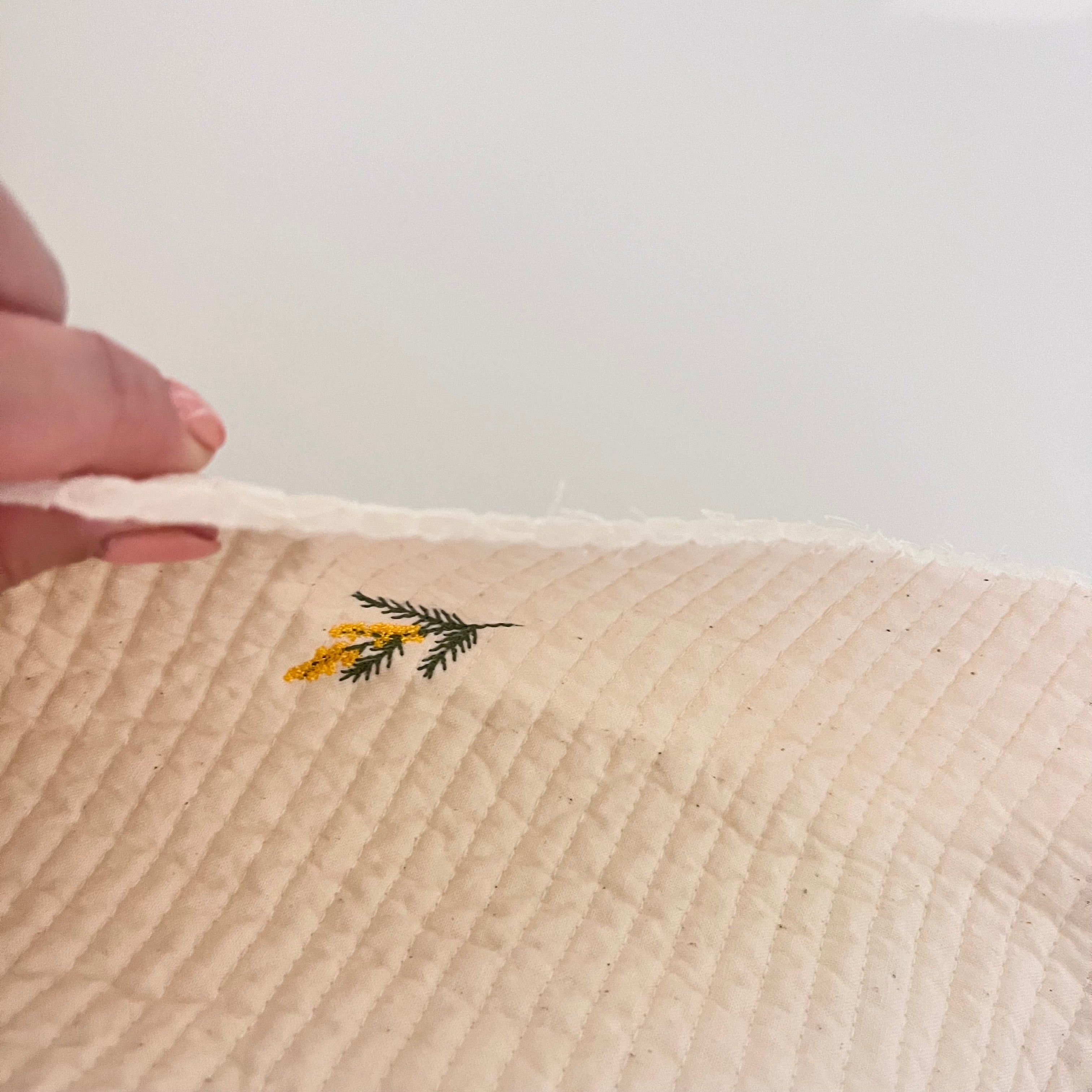 ミモザのお花が刺繍された